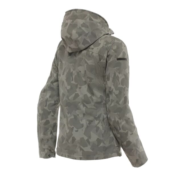 Centrale-jakken har en avtakbar polstret krage og en hette som kan rulles opp når du sykler med det reflekterende ryggbåndet. Hetten har en intern metallkjerne som gjør det mulig å stramme den rundt ansiktet, og skaper en topp som beskytter mot atmosfæriske stoffer (Uno Touch™ Hood Peak-teknologi) – med bare én hånd. Når du er av motorsykkelen, vil den vanntette og forede nedre lommen holde hendene dine varme.